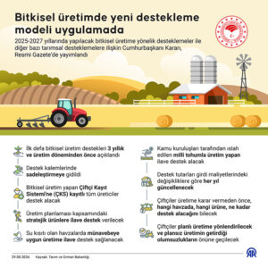 “2025-2027 Yıllarında Yapılacak Bitkisel Üretime Yönelik Desteklemeler ile Diğer Bazı Tarımsal Desteklemelere İlişkin Cumhurbaşkanı Kararı”, Resmi Gazete’de yayımlandı.